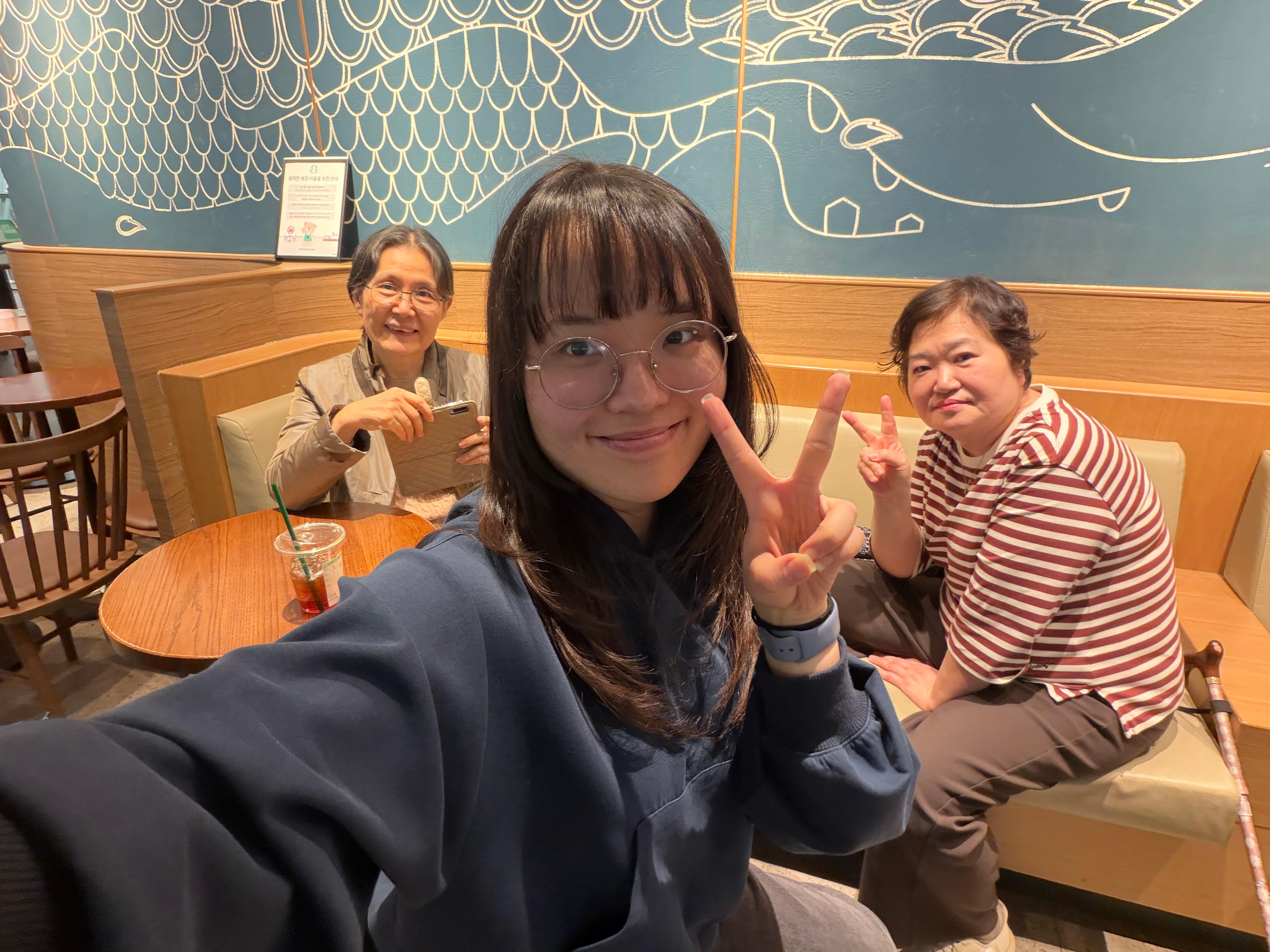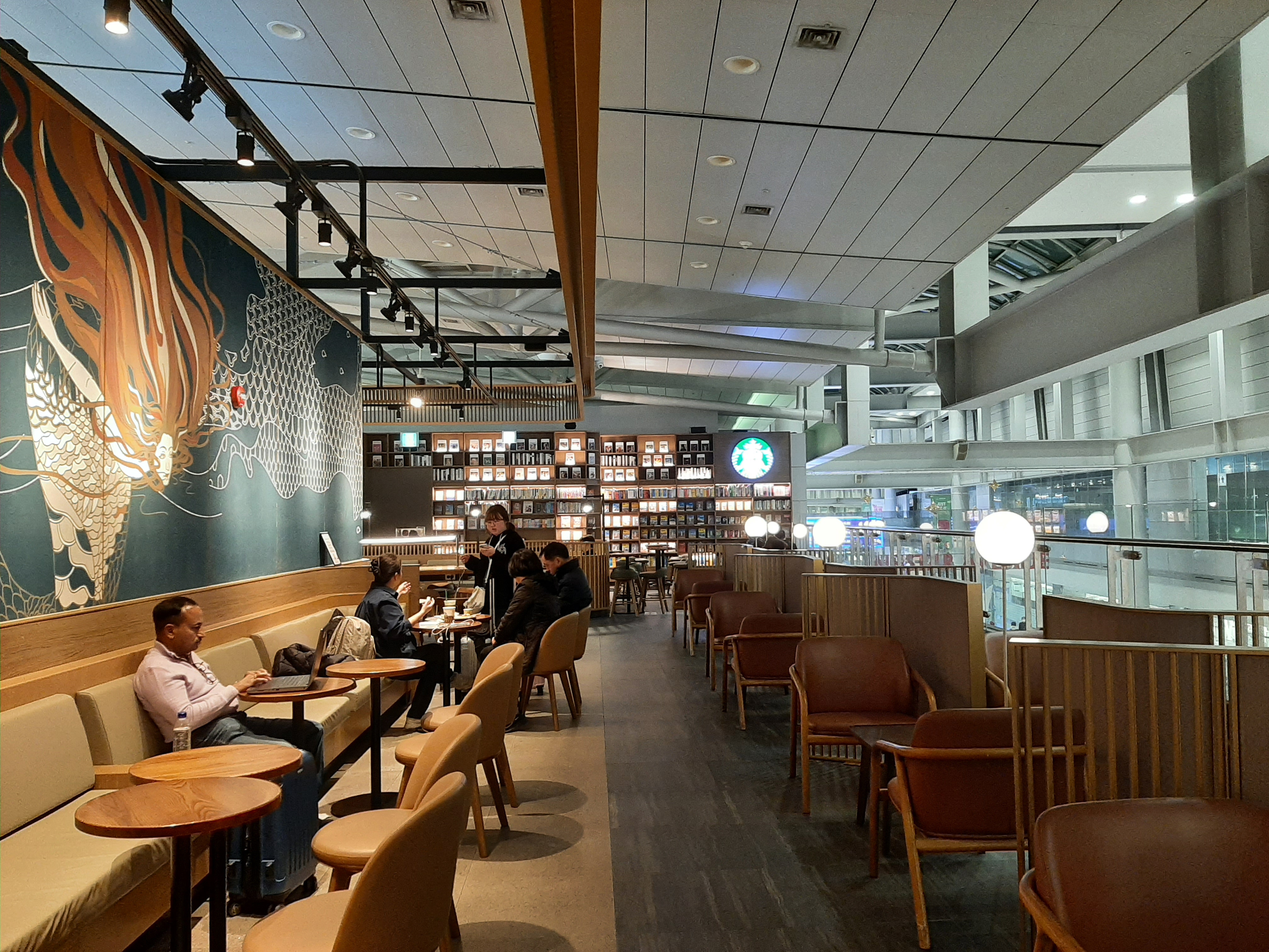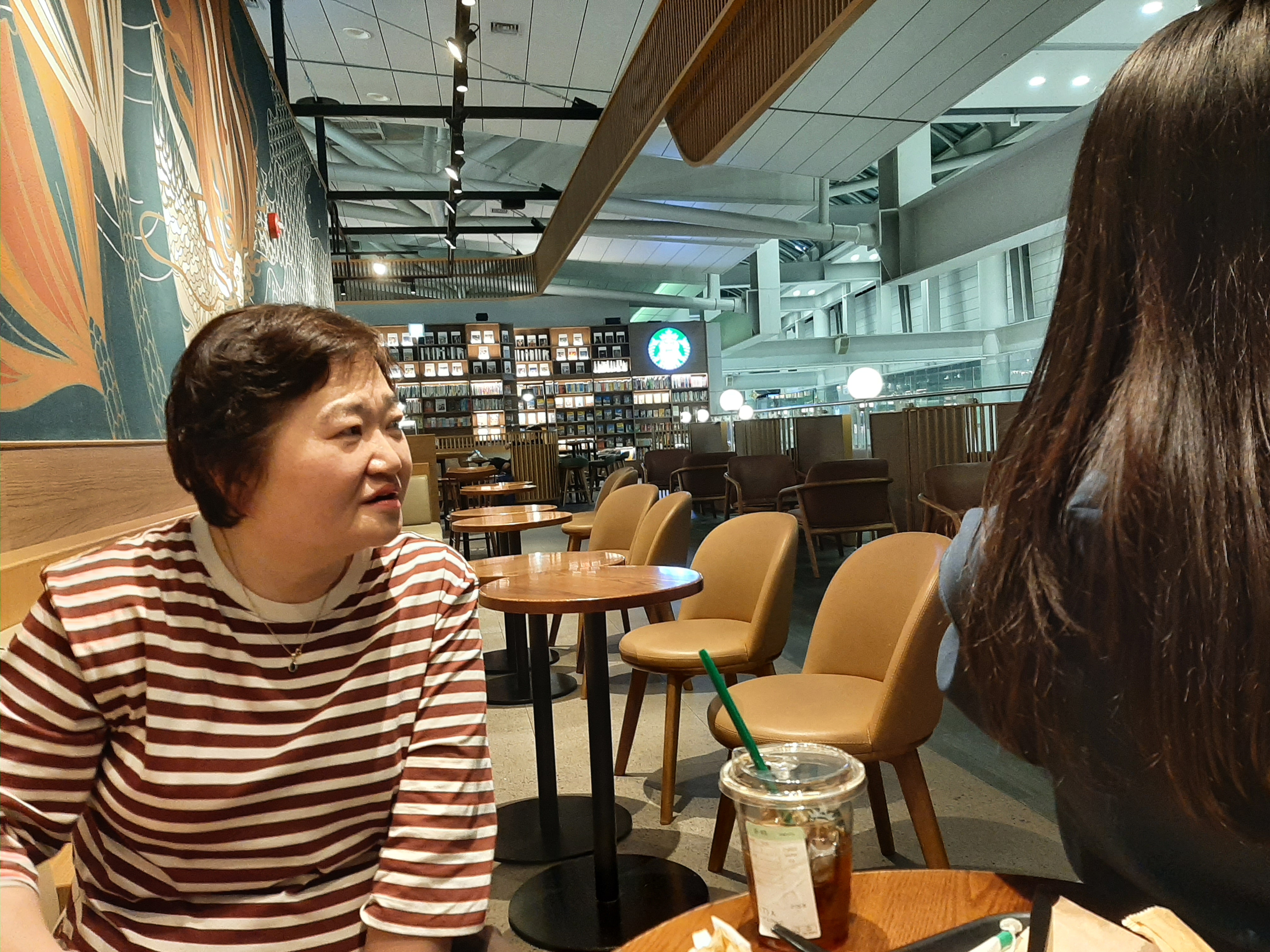 공항에 일찍 도착했기에 여유 있게 짐을 부치고, 출국수속을 마쳤는데도 시간이 널널하게 남아서 스타벅스 북카페에 들어갔다. 공항 내에 그런 공간이 있는지 처음 알았다. 조용하게 수다를 떨었다. 그래도 시간이 남아 3인 모두 듀오링고를 열고 각자가 좋아하는 외국어인 중국어, 영어, 일어 공부를 하며 시간을 보냈다.