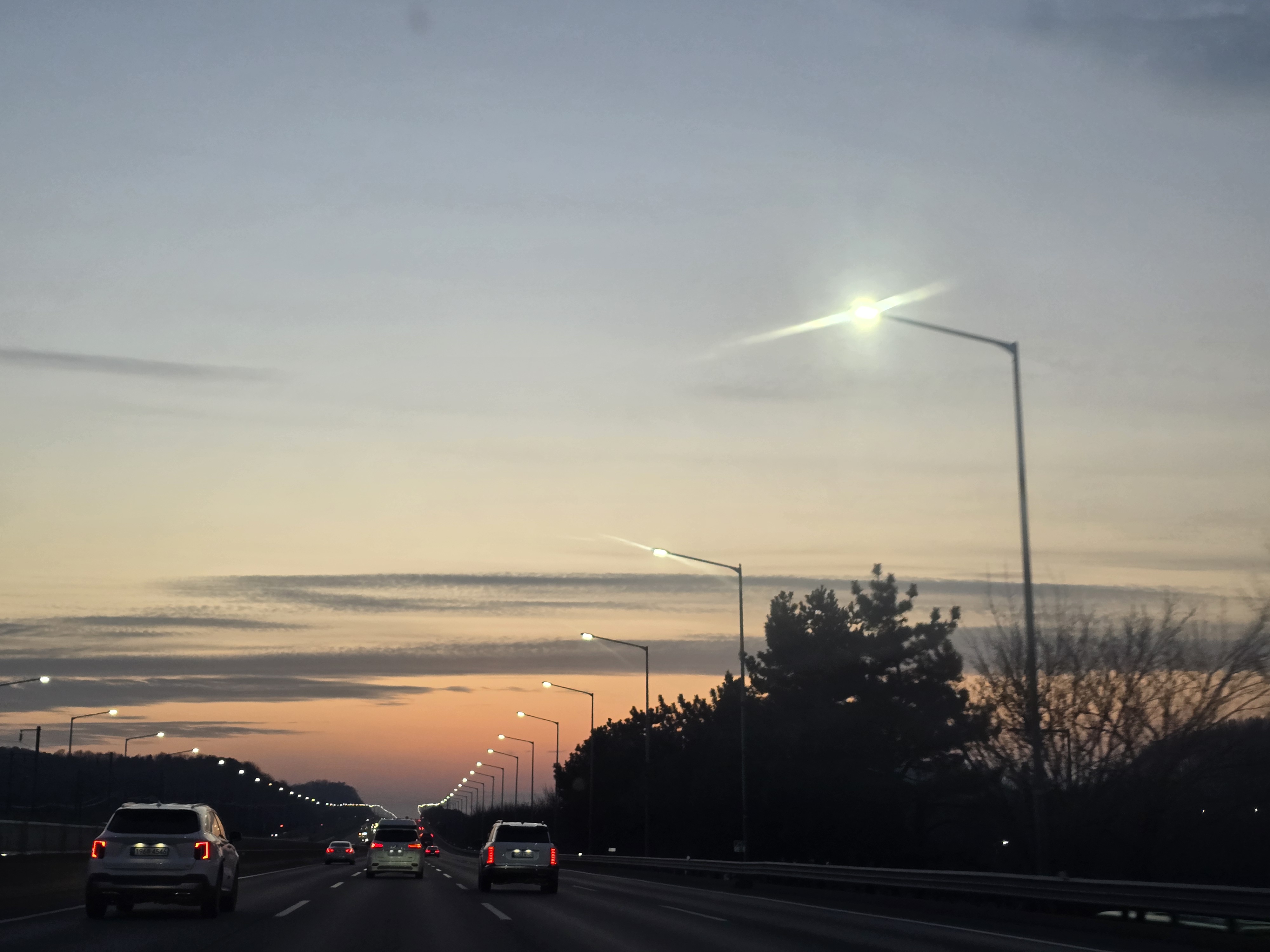 앞마당 텃밭에는 올해 농사지을 준비로 인해 퇴비 냄새가 내려앉아 있었다. 텃밭 농부 남동생은 올레길 5번째 완주를 위해 어제 제주도로 떠났단다. 우리는 퇴근 시간에 맞추어 나와서 주유소에 들려 기름을 넣고 인천공항을 향해 떠났다. 공항 가는 길에서 만난 석양이 참 아름답다.