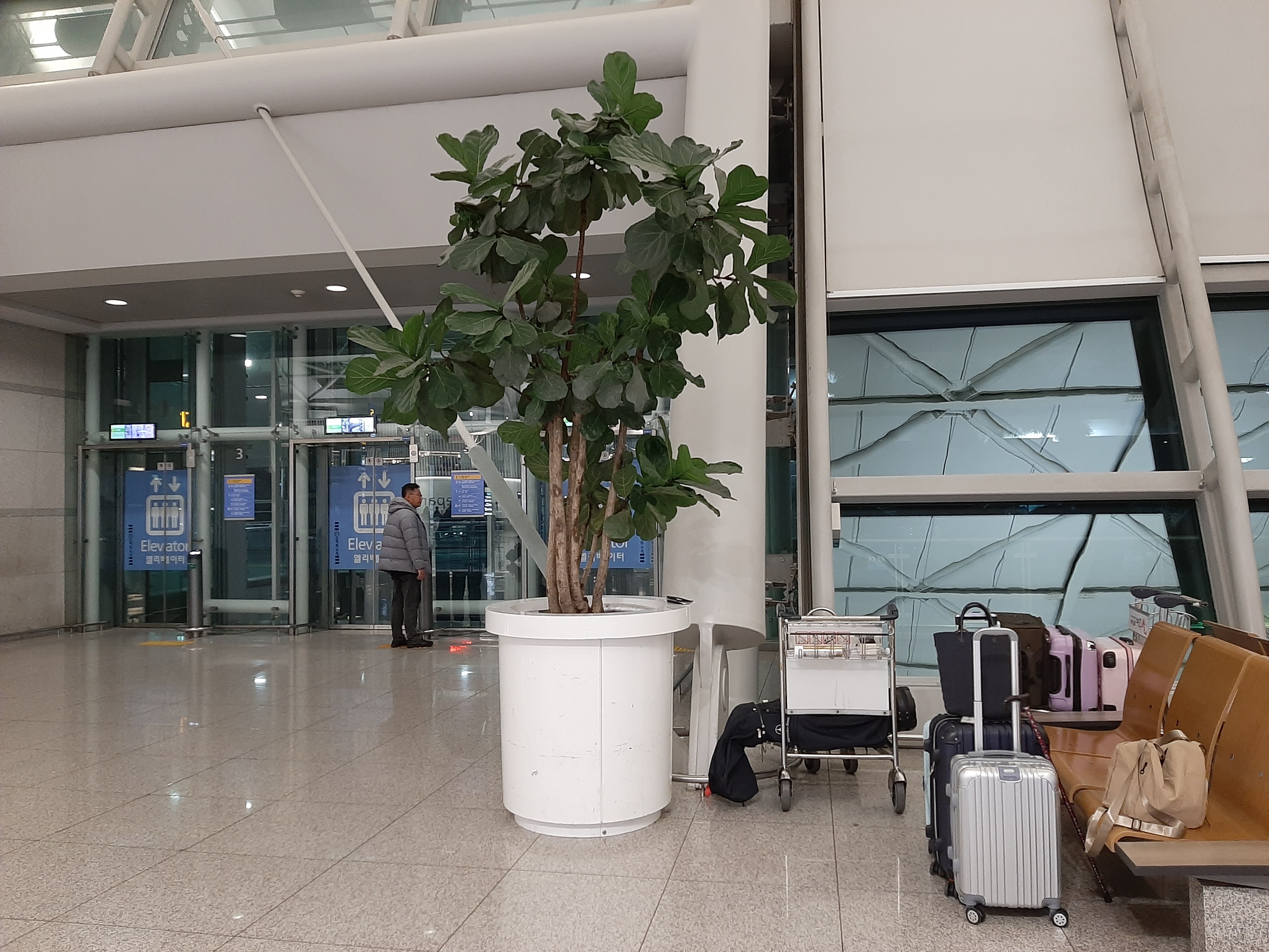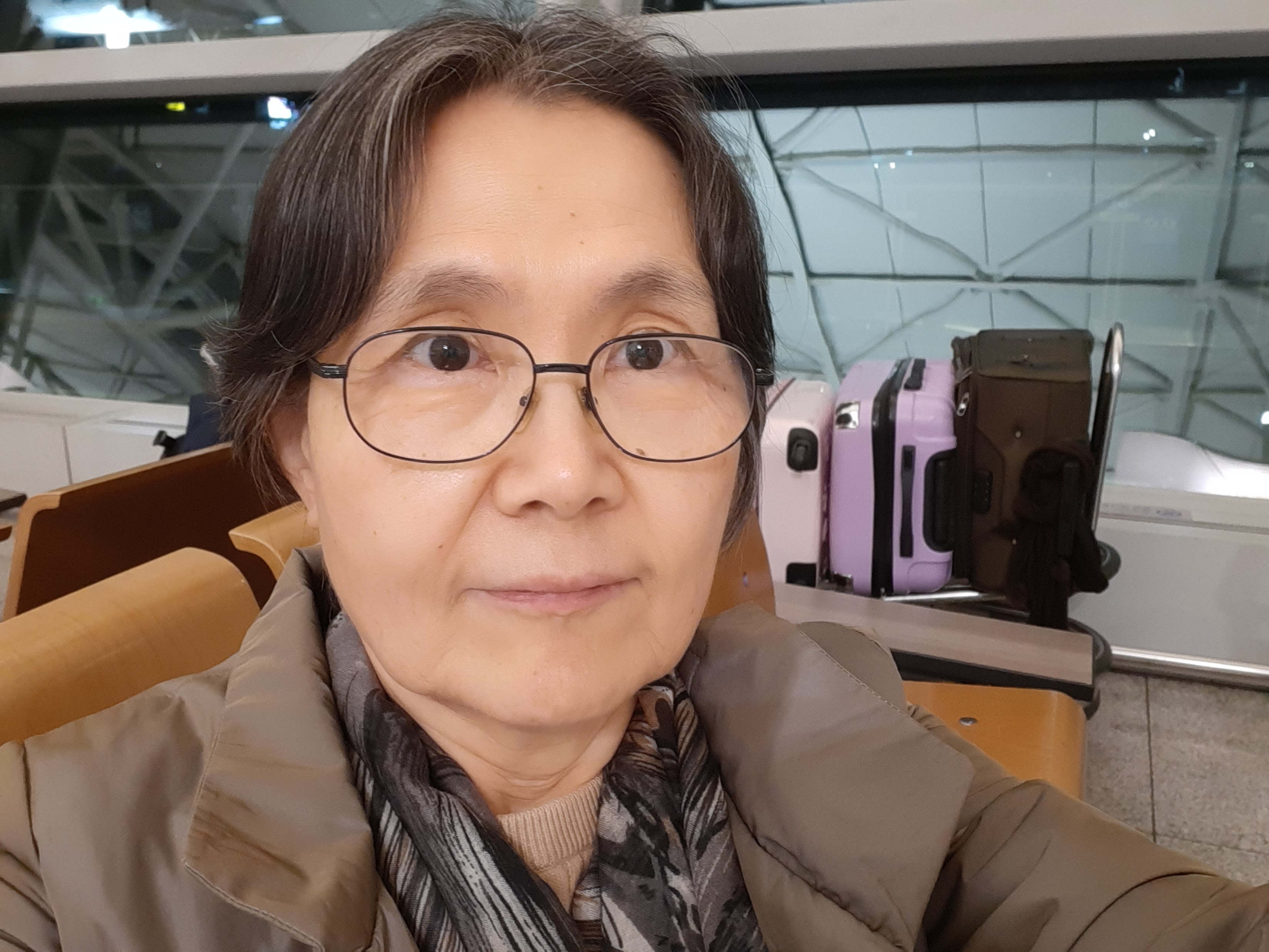인천 공항은 생각보다 아주 한가했다. 우리를 내려주고 주차하러간 도토리를 기다리면서 셀카 한장 찍고!