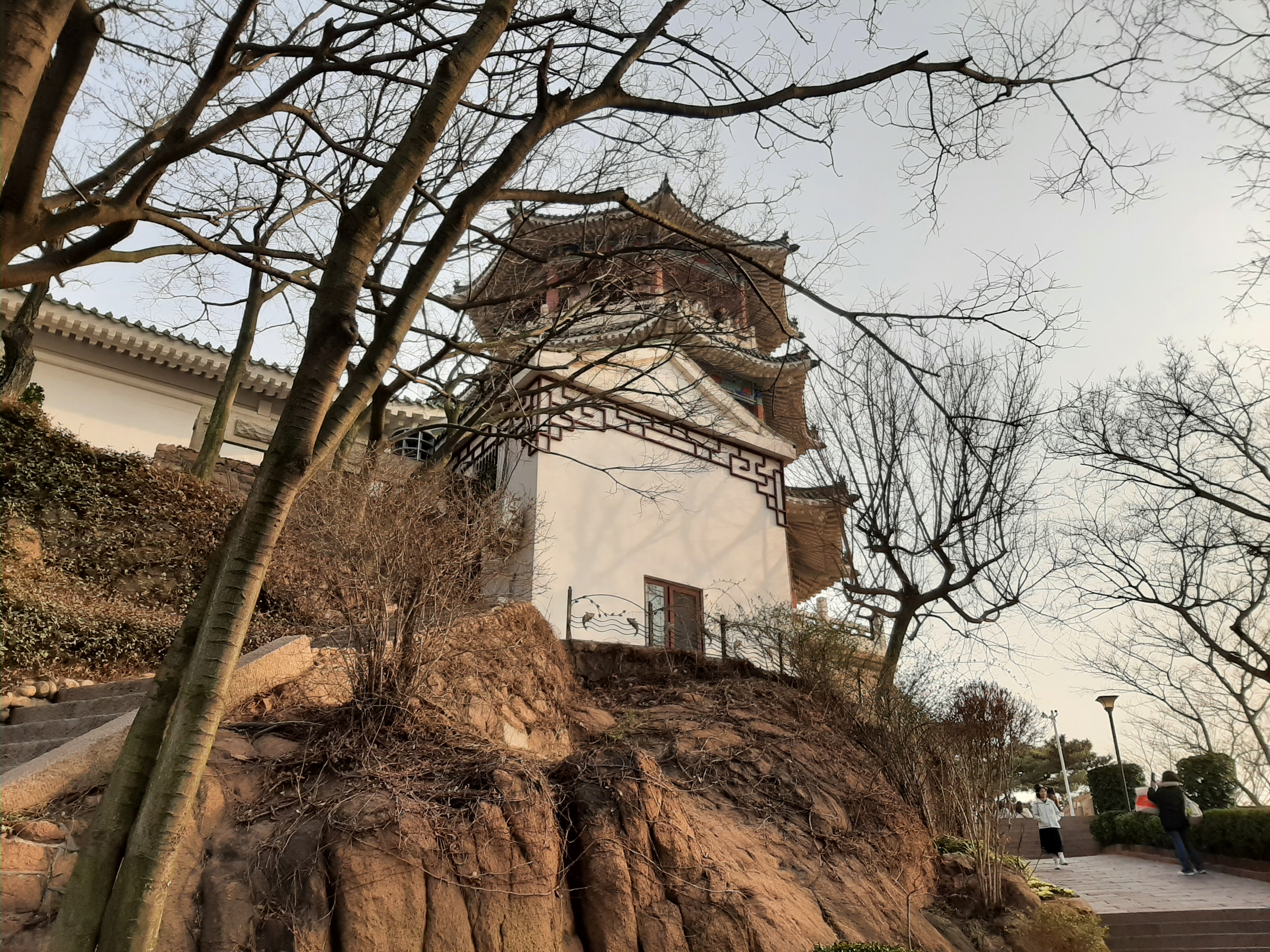 조금 더 올라갔다. 높은 언덕 위에 있는 3층 규모의 팔각형 누각(남조각)이 있고, 주변에는 여러 정자와 조각품이 있다.