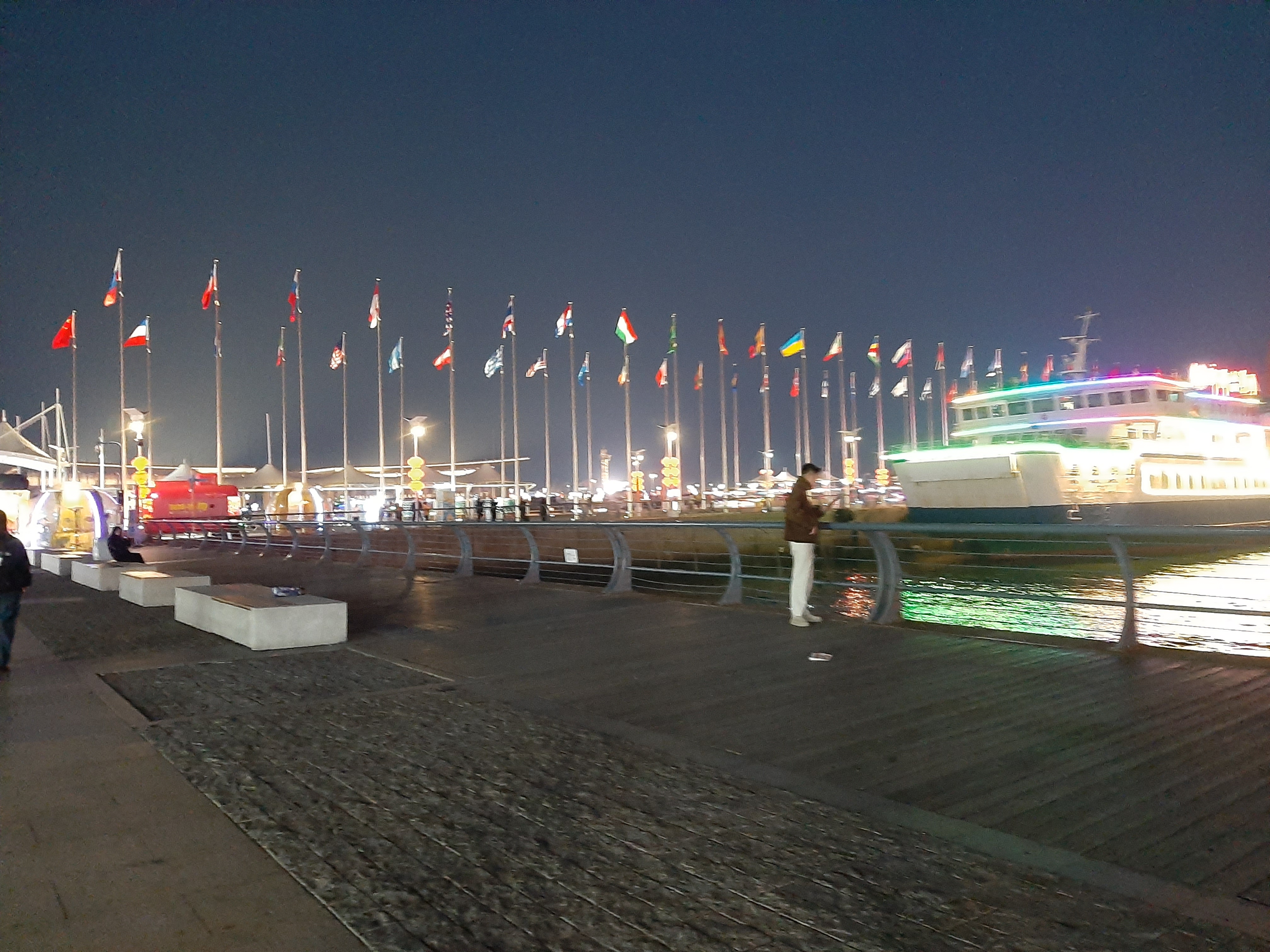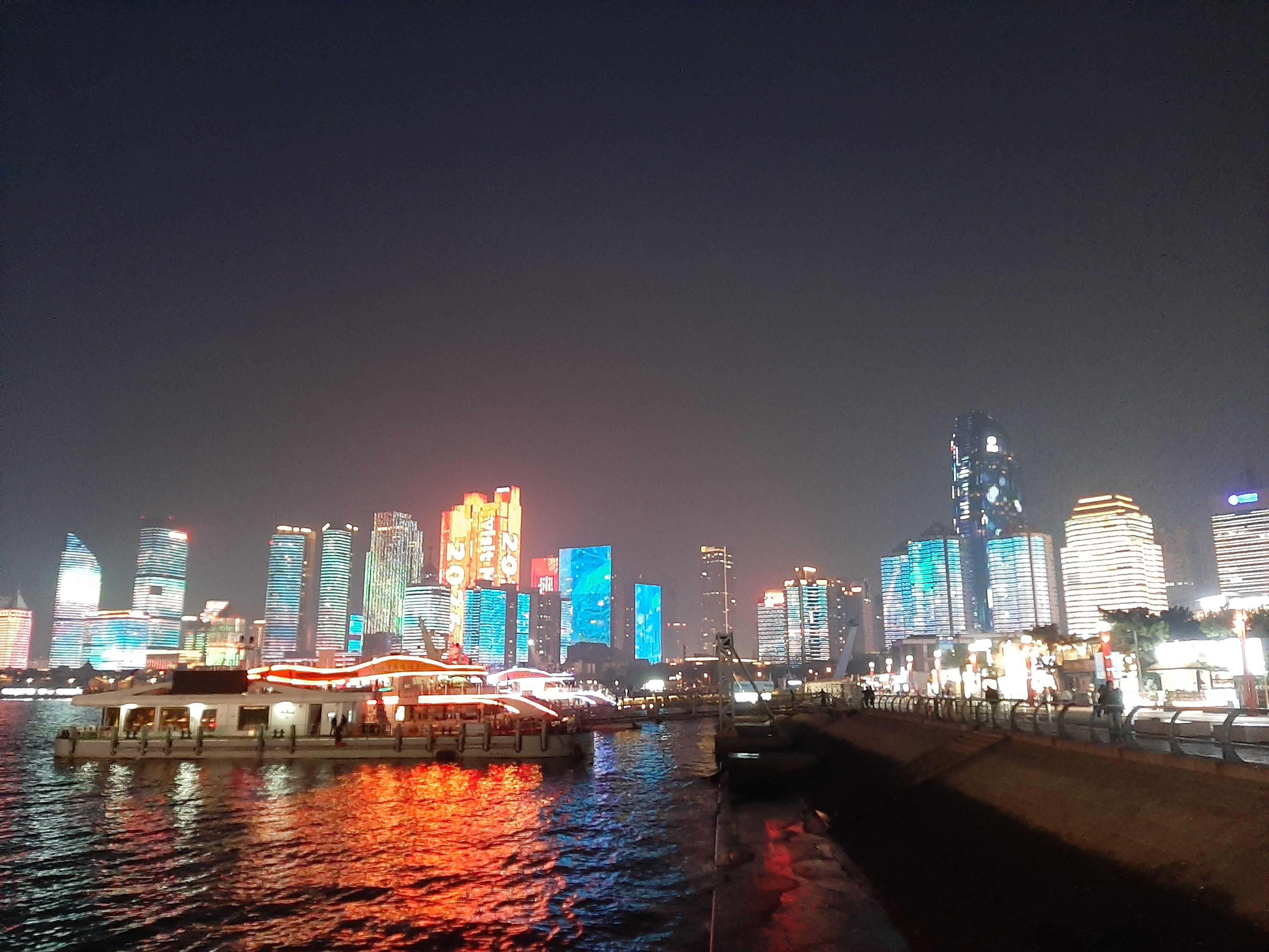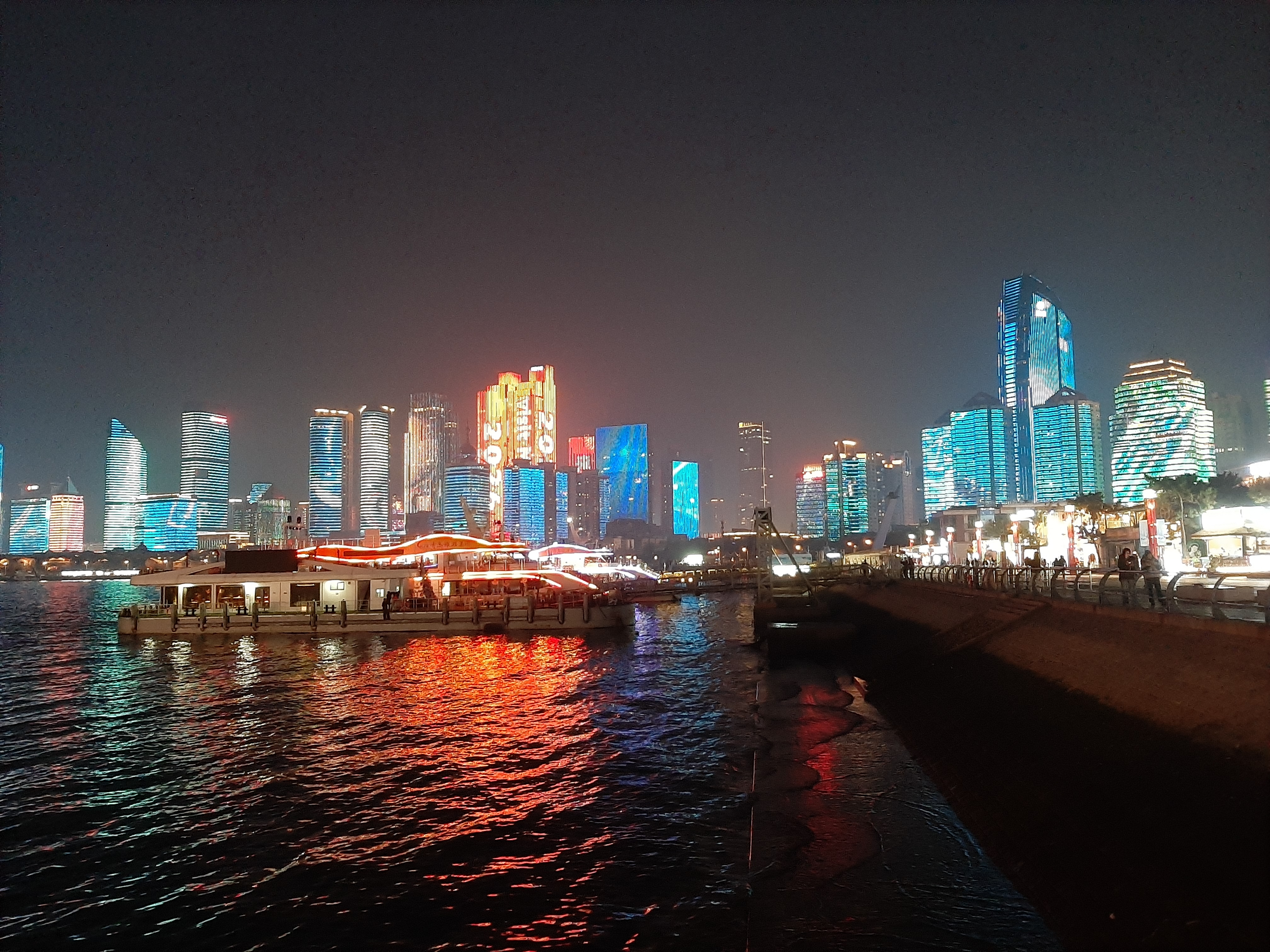 소어산 공원에서 내려와 5.4광장 근처의 바닷가로 야경을 보러 갔다. 5.4광장은 칭다오가 5.4운동의 발단이 된 것을 기념하며 조성한 공원으로 역사적인 의미가 깊은 곳이다. 이곳의 상징물인 횃불 모양의 ‘오월의 바람’은 바람을 붉은색으로 형상화한 것으로 인기 있는 포토스팟이다. 바다 바로 앞에 위치하여 현재는 시민들의 쉼터가 되었단다.